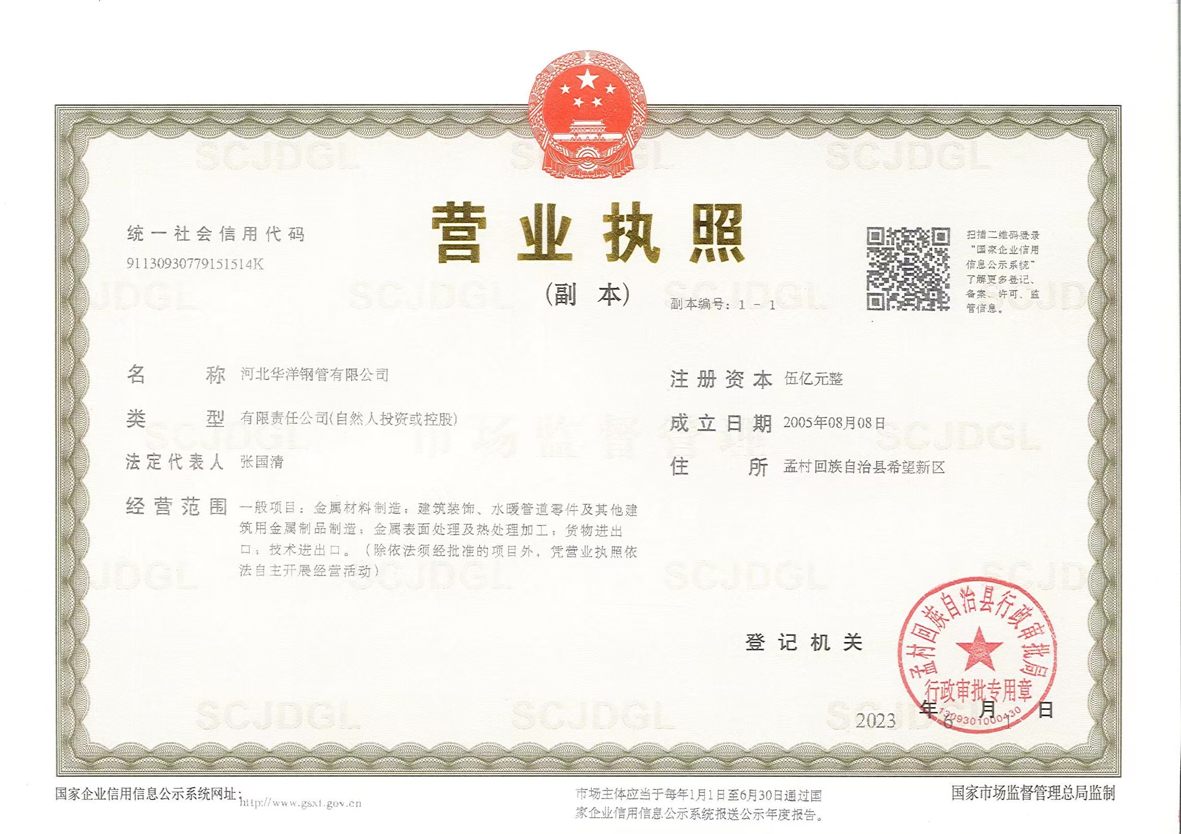 公司產品主要用于石油、天然氣、水、蒸汽、煤氣等高、中、低壓流體輸送管道及打樁、橋梁、建筑等結構用鋼管,并承擔了國內外標志性工程建設,華洋作為一個綜合型生產企業(yè),下設河北銘高貿易有限公司,以及在天津石家莊、山東、四川、廣州等地設立有3家分公司和5個辦事處。產品銷往各個城市井出口東南亞、中東、歐美等八十多個地區(qū),在國內外享有很高的聲譽。