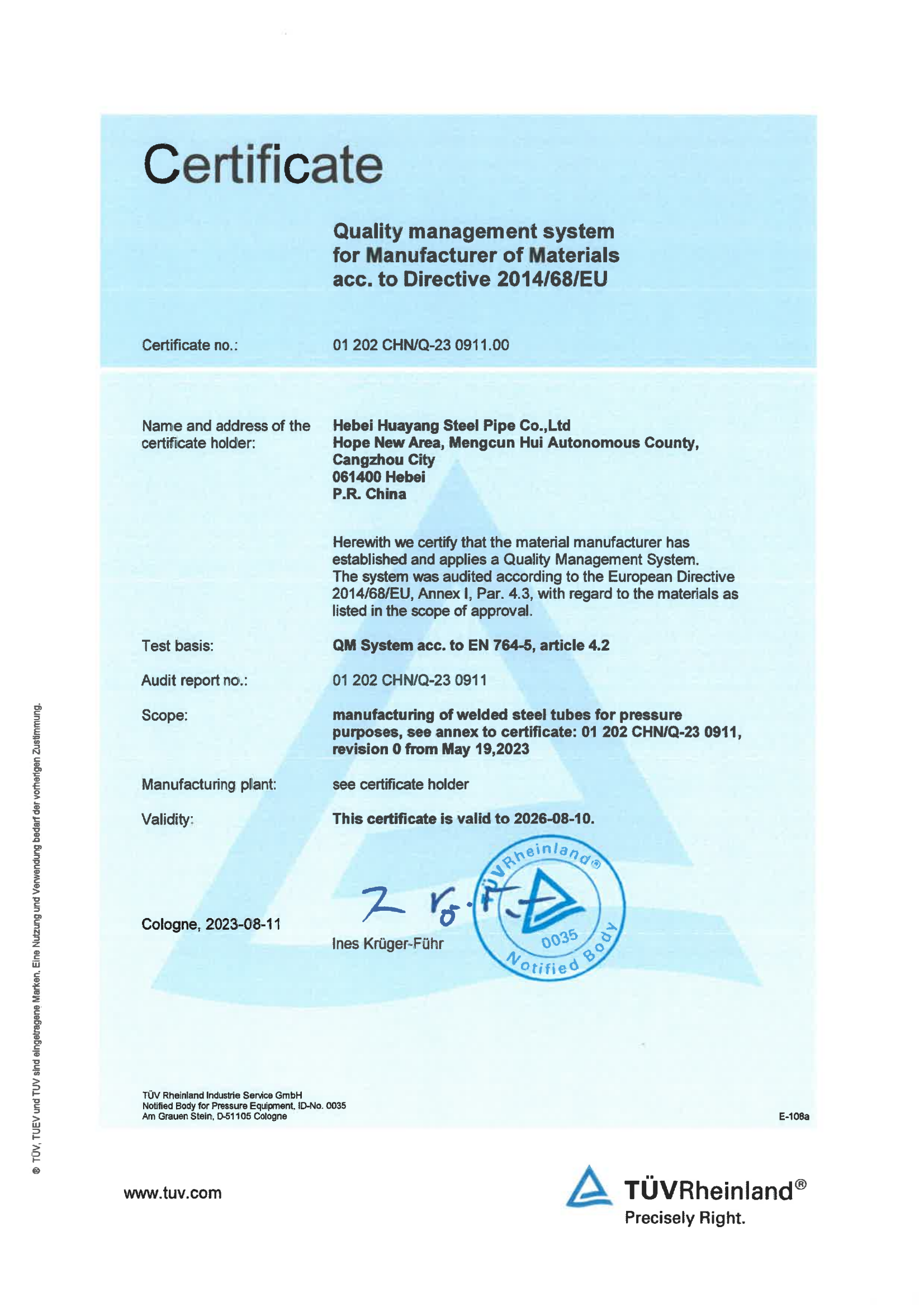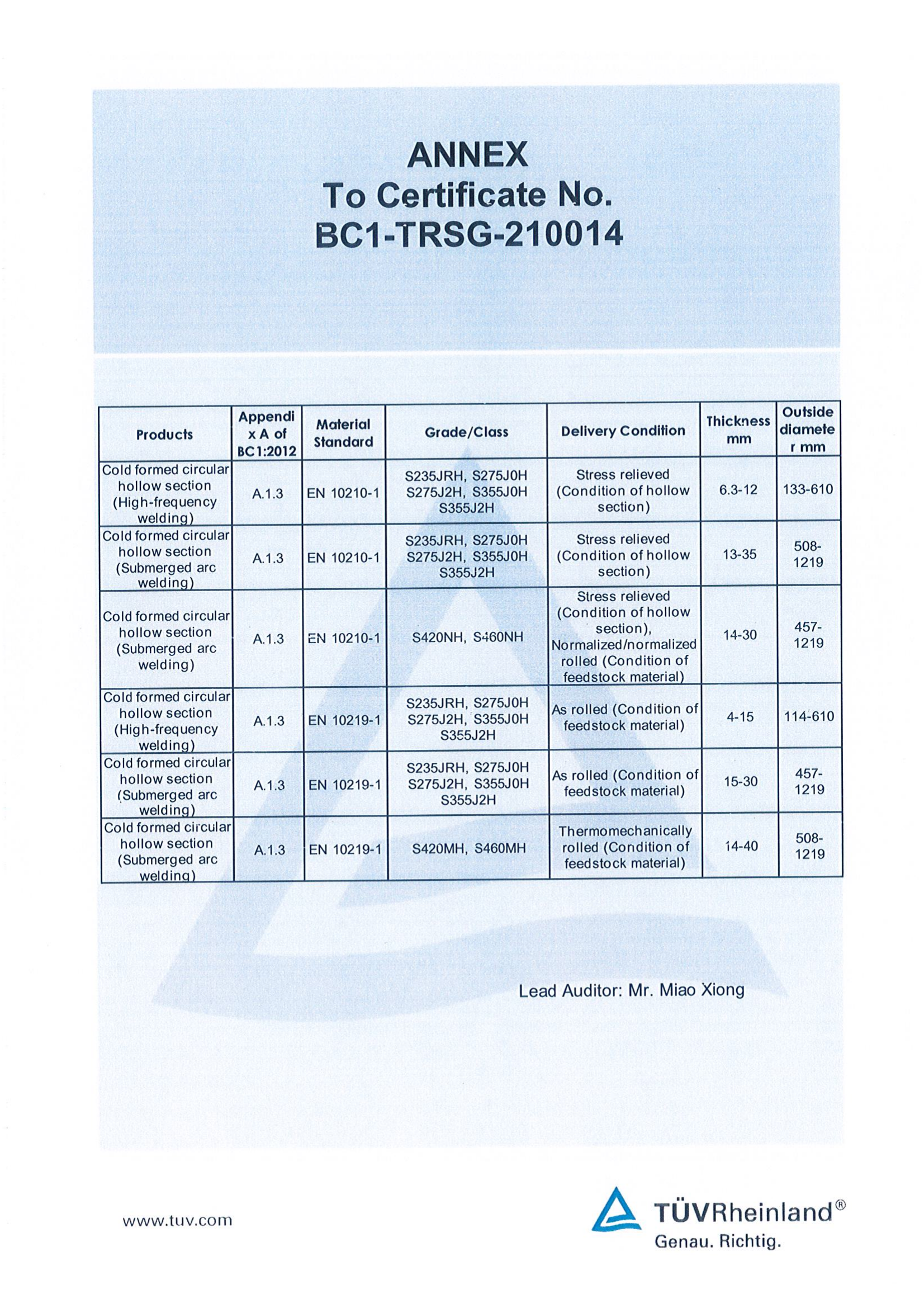公司現(xiàn)有17條新型的自動化鋼管生產線,包括Φ73-660.4高頻直縫焊鋼管生產線14條、Φ406.4-Φ1422.4直縫雙面埋弧焊鋼管生產線3條,并配備有一條防腐生產線,可進行3PE、2PE、FBE、2PP、3PP防腐處理,同時還可提供鋼管深加工服務。公司擁有先進的理化實驗室,可承擔鋼管的各項物理及化學檢測與試驗。公司先后取得了ISO9001質量管理體系認證、ISO14001環(huán)境管理體系認證、ISO45001職業(yè)健康安全管理體系認證、特種設備制造許可證、API5L和API2B認證證書、歐盟CE認證、俄羅斯GOST認證、中海油入網(wǎng)證、安全生產標準化二級企業(yè)等標準質量體系認證。