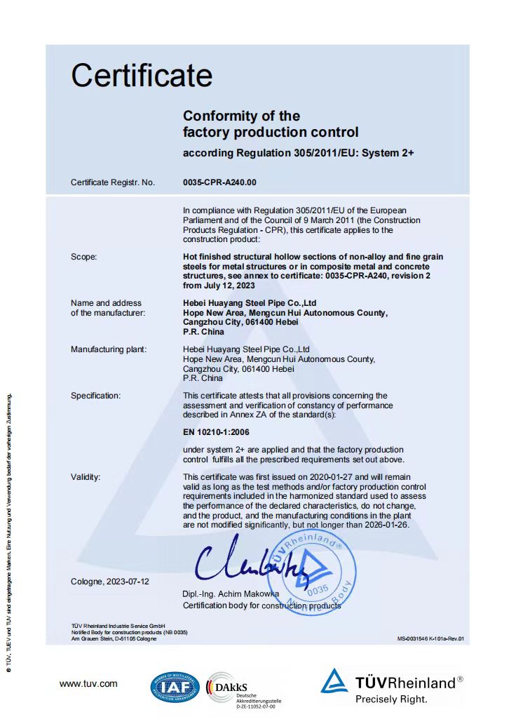 河北華洋鋼管有限公司公司創(chuàng)建于2005年,注冊資金5億元,公司占地面積1000余畝,固定資產12億元,年銷售收入近100億元,現(xiàn)有員工600余人。“華洋牌"高頻直焊鋼管被評為“河北省名牌產品”,年生產能力可達260萬噸,2024年河北華洋鋼管有限公司榮獲河北省百強民營企業(yè)(69位),河北省百強制造業(yè)(57位)榮譽稱號。